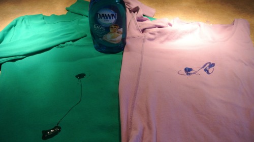 I have since worn these shirts and I can say that I did not have a reaction from the Dawn dish soap. The amount needed to remove the stains wasn’t enough to make my clothes give me a reaction. However, if you think you might have a reaction from the Dawn I would recommend rinsing some of the soap out of the garments after it soaks and then wash as usual.