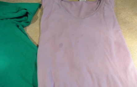 I decided to try it out on two of my favorite knit tops that I used to wear all the time but were now no longer usable for work because the stains were too obvious.